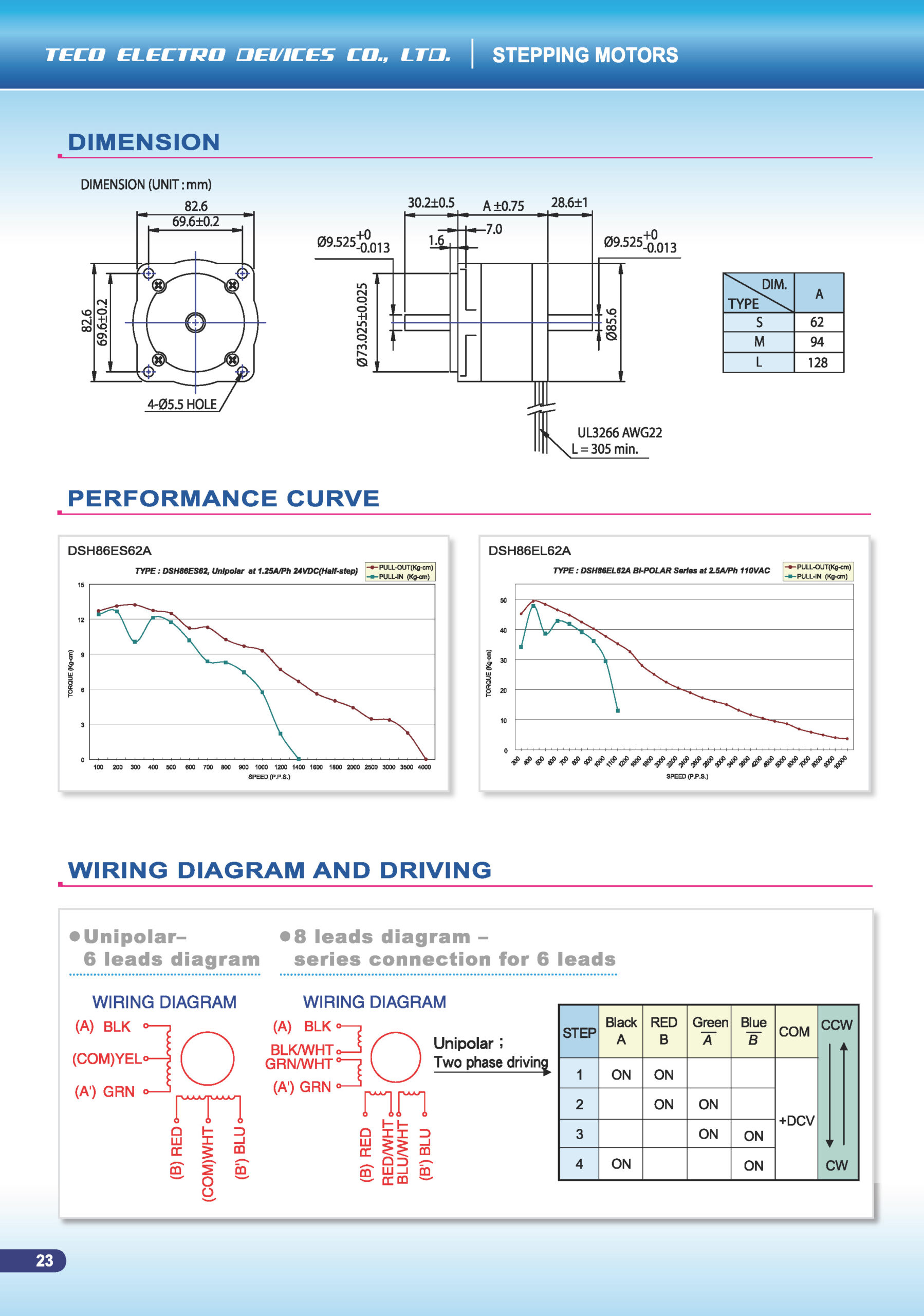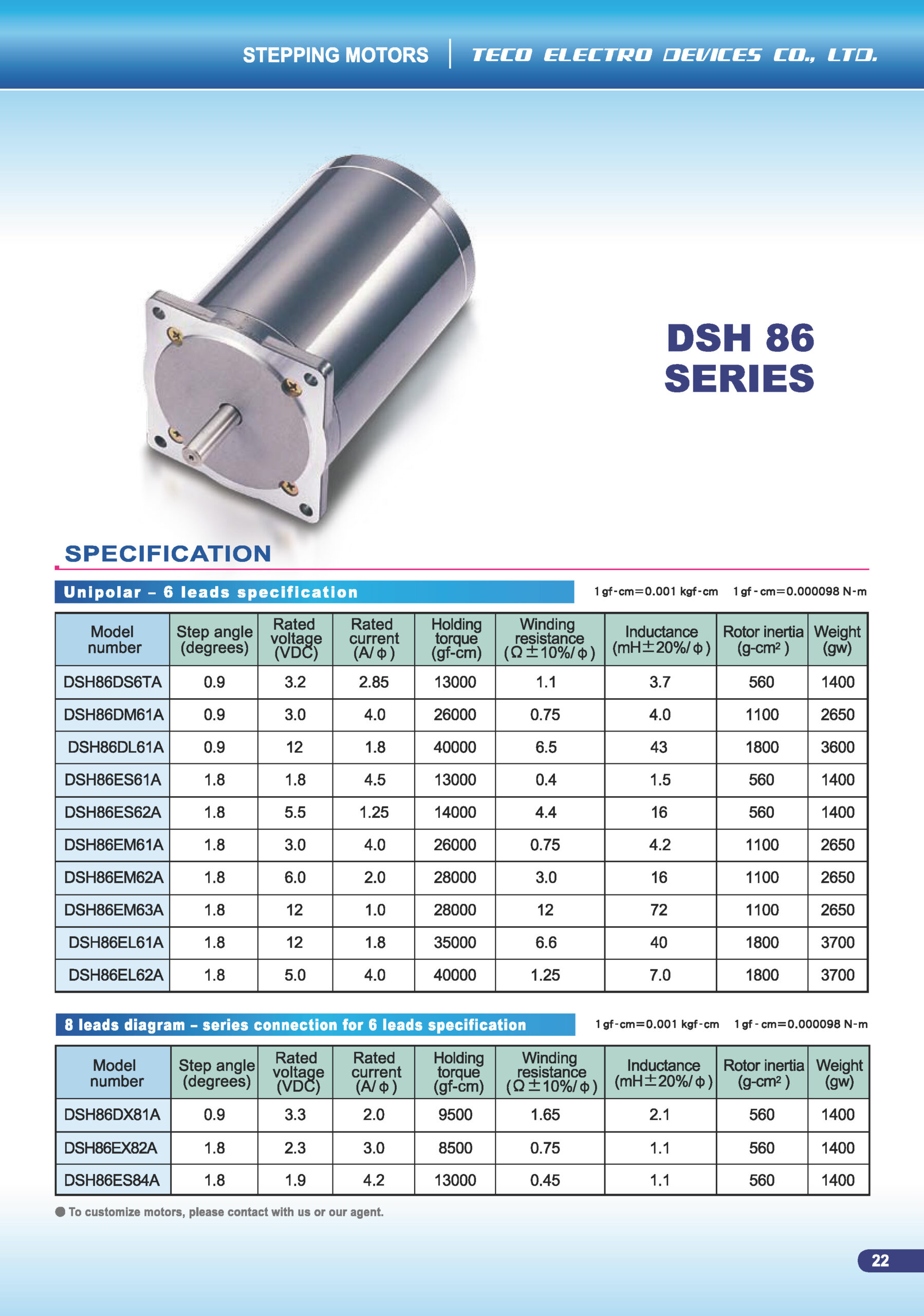 The DSH86 Series is part of TECO’s DSH family of hybrid stepping motors.