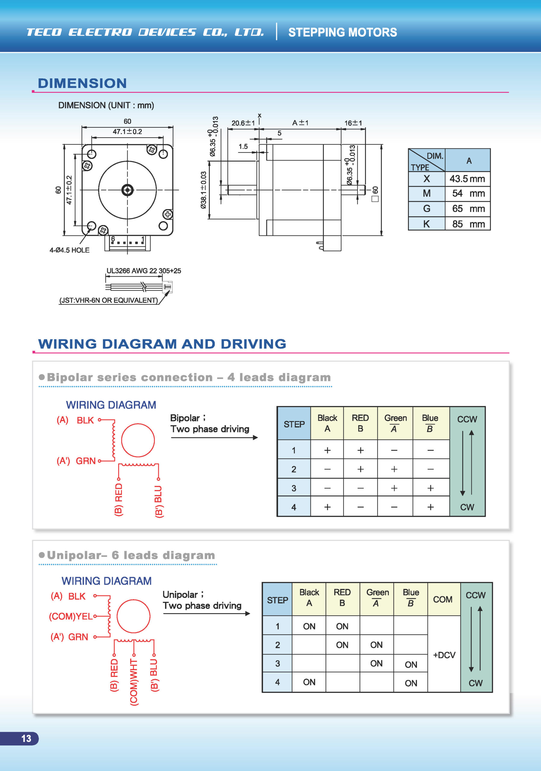 The DST60 Series is part of TECO’s DST family of hybrid stepper motors. The “60” in the name denotes the frame size class (~60 mm).